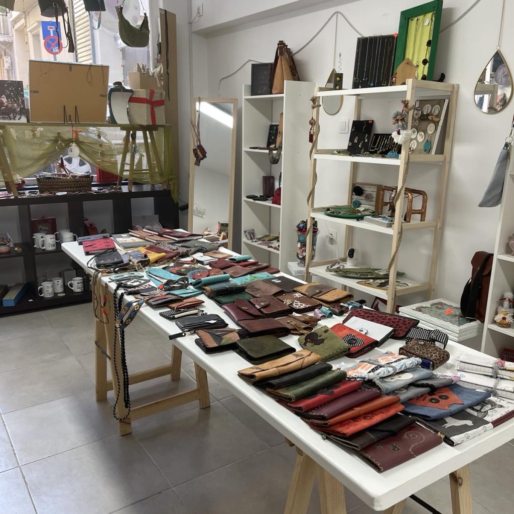 •Εμπόρευμα (χειροποίητα κοσμήματα & δερμάτινα είδη)