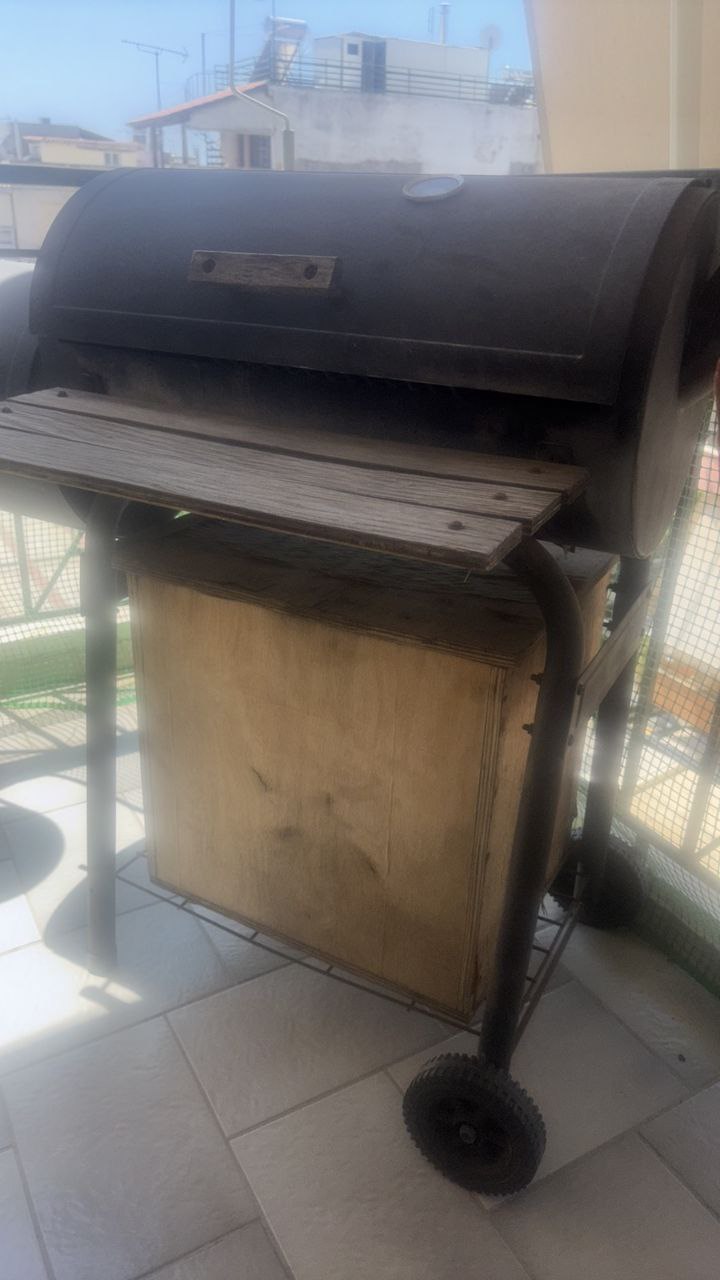 Είναι κατάλληλη για μπαλκόνι αλλά και κήπο. Περιλαμβάνει ξυλινο πάγκο, πλαινη προεξοχή για εργαλεία και κάρβουνα, καθώς και ξύλινο κουτί αποθήκευσης από κάτω.